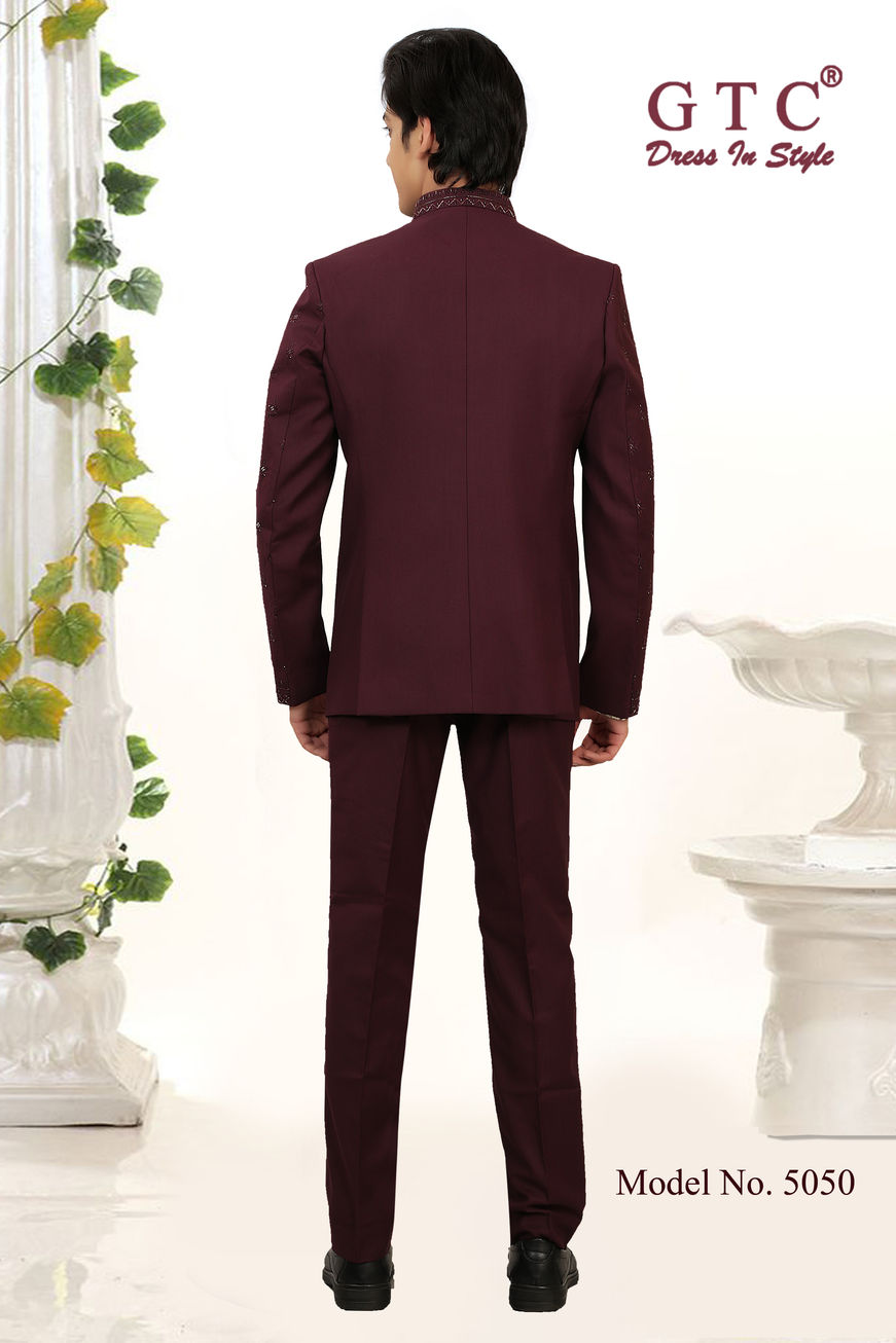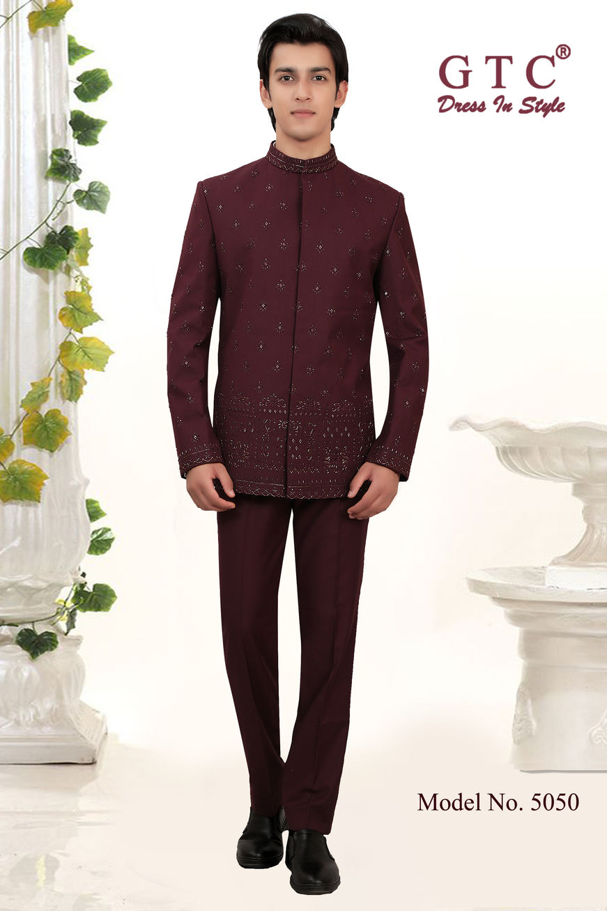 Look no less than a maharaja at any special occasion or event donning this vintage GTC- Jodhpuri Suit that conforms with both trends and tradition. Designed on Imported TR Suiting fabric in a straight symmetrical cut, it is embellished with the finest of hand-beaded work combinations in an opulent design. Paired with a wine formal pant, this ensemble is the epitome of elegance and sophistication. At GTC Dress In Style, we ensure that each piece reflects our commitment to quality and timeless fashion. Elevate your wardrobe with this regal outfit and leave a lasting impression.