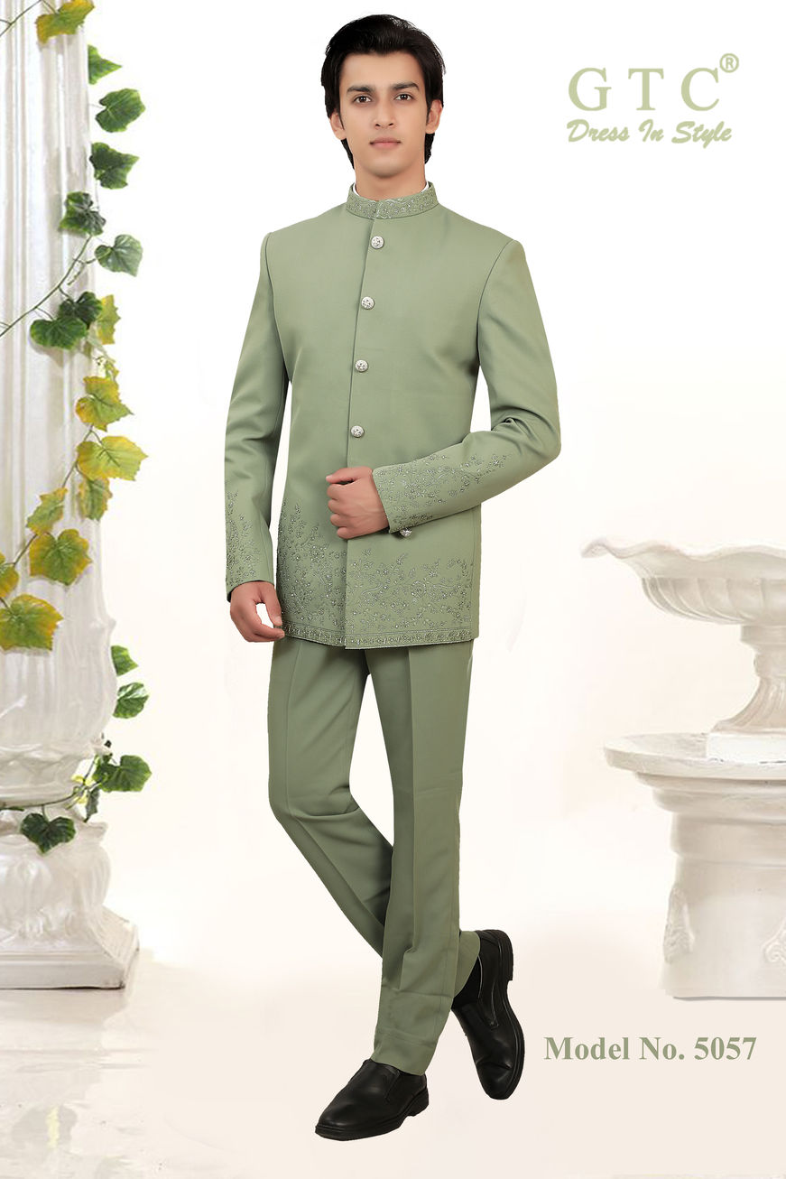 Look royal as ever at any event donning this tranquil GTC - Jodhpuri Suit designed on Imported TR Suiting fabric, exquisitely embellished with pure hand-beaded work in a soothing color scheme. It is paired with matching formal pants, ensuring you make a timeless statement. At GTC Dress In Style, we prioritize quality and elegance, offering you attire that speaks of sophistication and meticulous craftsmanship. Elevate your wardrobe with this regal ensemble, perfect for adding a touch of class to any occasion.