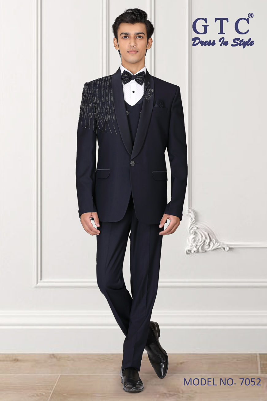 Suit up, show up, stand out and own the spotlight with this elegant GTC - Event & Party Suit designed on Imported TR Suiting fabric intricately detailed with exquisite hand-beaded work on shoulder, sleeves, lapel and bow. This statement piece from My Site ensures you will make an unforgettable impression at any event. Expertly crafted and paired with matching formal pants, it epitomizes the values of quality and sophistication our local business stands for. Allow yourself to be the star of the show with a suit that combines style, comfort, and unmatched elegance.